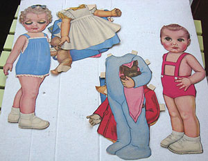 Paper dolls bring out the nostalgia in adults – especially baby-boomer females – who remember their hours of selfish fun swapping out clothes on them. I have a sense of playing with paper dolls, but I don’t have any memory.