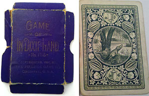 In Dixie-Land was one of more than 30 games made by the Fireside Games Co. of Cincinnati, OH, starting around 1895. The series was sold as educational games for 25 cents to 35 cents.