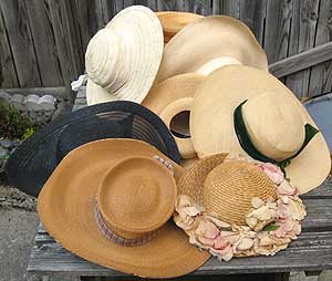 My girlfriend eyed the straw hats lying atop each other in an old cardboard file drawer. She lifted the one on top, a lovely hat made of light straw with a forest green velvet band tied around the head piece.