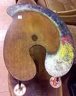 I had written a blog post two weeks ago about buying an artist’s easel and palette at auction. I’m not an artist but I do buy artwork, and those two tools made me feel just as close to the artist as the artwork I have on my walls. Both were like works of art themselves, much like this palette table I was admiring.