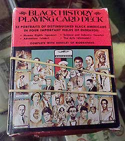 Emblazoned above his head in big black letters was “Black History Playing Card Deck.” I felt a tinge of recognition. Somewhere in the back of my mind I knew I had heard of this card game before, but could not recall having ever seen one.