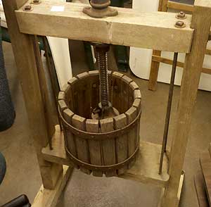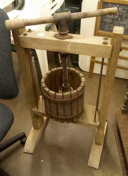 There was no indication of how old the auction press was, but I found a website of one man’s collection that he said dated back to the turn of the 20th century. He called them wine presses not crushers or mashers, and they were similar to the one at auction.