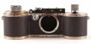 The most expensive. A Leica 250 Reporter body. An early model FF converted to GG in nickel finish with a top speed of 1/1000 second. Manufactured by Ernst Leitz in Wetzlar, Germany, circa 1934. Includes rare Bakelite body cap. $2,250.