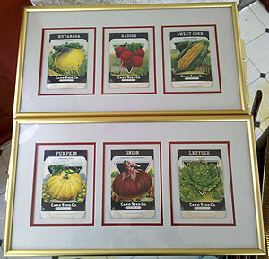 I have a few vintage items in my kitchen, some canned food labels and vegetable seed packets that I had framed and are now hanging on my walls. Some are authentic, others are cardboard reproductions.