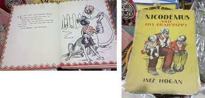 At left, a page from inside "Nicodemus and the Houn' Dog," and the cover of the Gran' Pappy book, which was published in 1936.