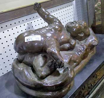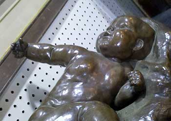 I’ve seen the little shoes that parents have cast in bronze as a memory of the time when their babies were cute and little and oh-so-precious. Imagine my surprise when I came upon a whole baby sculpted in bronze during a walk-through recently at an auction house.