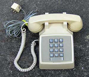 The phone was obviously disconnected, its unattached cord lying just behind it. It had been placed near the edge of a table at the flea market, and no man, woman or child could resist picking up its receiver or for the kids punching its raised buttons.