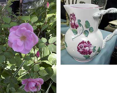 There are said to be 150 species of roses around the world today. They have been the inspiration for songs, poems and books, and the Kentucky Derby has chosen it as its official flower. Here a sampling of the roses from my walks and the man-made replicas from auctions: