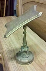 Who can tell me what this is, the auctioneer quizzed us auction-goers as we sat staring at the next item up for bid. He was holding a small brass stand with a slanted head that, from where I sat, looked like a simple easel.