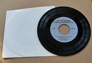 I hadn’t thought of the little man in years until I got hold of a box lot of ephemera recently. He wasn’t in the box, but there was an item even more intriguing: A 45 rpm record in a plain white paper sleeve. On the label: