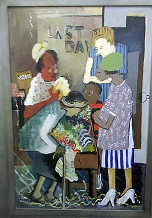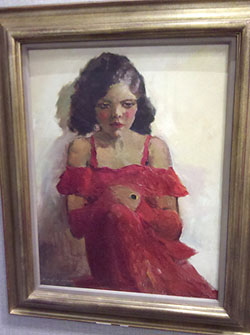 I loved “Meeting Place” for its realistic look at the women, each seemingly oblivious to the others. This painting was a connector between us bargain hunters of today and them of yesterday, putting us right smack in their time and place. Who doesn’t like a great bargain? The intensity of their hunt seemed bewildering to the wide-eyed little boy in the center of it all.