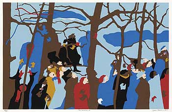 Jacob Lawrence‘s “The Swearing In,” his take on Jimmy Carter’s 1977 inauguration ceremonies, was relatable to my art auction buddy Kristin and me. It reminded us of our trip with two other women to Washington in mid-January for President Obama’s inauguration. We were among the thousands – heads up-turned, as in the Lawrence print – watching the ceremonies on a Jumbotron. Unfortunately, we saw very little of the actual festivities, but it was a blast being in the city at the time.