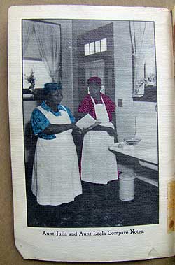 I love old cookbooks and am always on the lookout for them. I opened the book and to my surprise and delight, I saw a black and white photo of two African American women in a kitchen holding what looked like a cookbook. Their dresses and headscarves had been colorized.