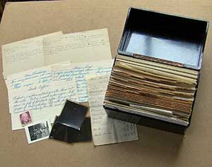 Combing through the box was like going on a treasure hunt, me turning card after card looking for the personal items that the owner may have tucked away as keepsakes. I didn’t have to look for long, because I soon came across small folded papers and photos between the cards. These items indicated that the contents were 30 years apart: the 1940s and 1970s.