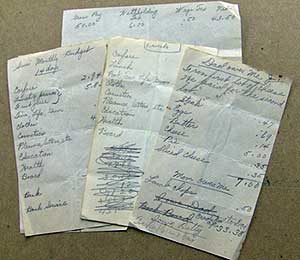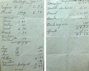The most interesting were three index-card-size sheets of a budget handwritten in pencil showing the cost of living in the 1940s and how meticulously the owner had budgeted her meager salary. This was about a decade after the Depression, and I’m sure most people were very cautious about finances.