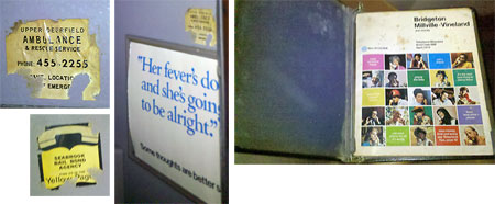 The counter beneath the phone held a 1974 phone book for three New Jersey towns far away from the auction house and closer to Atlantic City. Above the phone was a motor with an on-and-off switch for a fan in the ceiling. Affixed to the walls was a sign with a message, along with two ads for an ambulance service and a bail bondsman.