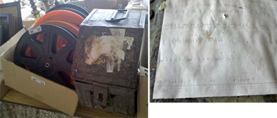 At the auction, I continued checking the fronts, backs and interiors of the canisters to see what else I could find out. None of the labels bore the name of a movie house; in fact, most had been marred by rain and the elements, faded and torn.