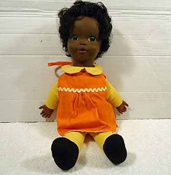 You have to be both vigilant and constant about checking eBay. I found two identified as Tamu that sold for $65.99 and $125 on the auction site last April. Another sold for $10 in May, but the seller apparently didn’t know the doll’s name because it was not identified as Tamu. Another sold for $9.99 the same month (not sure it was a Tamu, which resembles Shindana’s Dee Bee doll). Someone was even selling a poor little Tamu who had lost most of her hair for 1 cent.