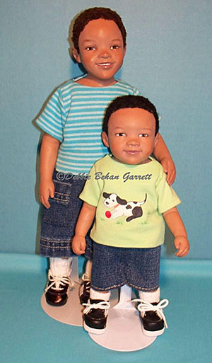 During the summer of 2008, I commissioned a doll artist to sculpt portrait dolls of my two grandsons. They were ages 2 1/2 and 7 1/2 at the time. Using several photographs taken at several different angles of the boys, master doll artist Ping Lau successfully captured their likeness in resin. Having arrived just prior to Christmas 2008, the boys’ portrait dolls were my Christmas present from me to me that year.