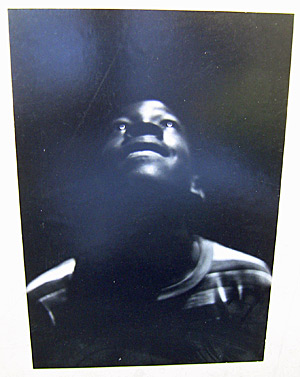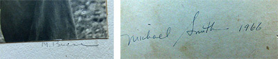The other photo had a title and signature on the back: “Boy in Stree light (the “t” was missing),” Michael Smith 1966. Although legible, the name was so common that it was just as hard trying to find out more about him on the web. This photographer had opted for an out-of-focus shot, with the light changing the boy’s pupils to small white circles and his facing seeming to rise out of the darkness.