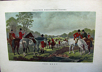 It was a 19th-century reproduction titled “The Meet” from “Herring’s Fox-Hunting Scenes,” originally painted by John Frederick Herring Sr., one of England’s greatest sporting and animal painters. The painting was from a series of four that showed a fox hunt from beginning to end, and was engraved by John Harris in 1867. This was apparently a reproduction of Harris’ engraving.