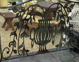 I wasn’t so much interested in the furniture as I was in the metal outdoor furniture parked nearby. Much of it was very familiar, the ironwork chairs and tables you see at most home stores – all waiting for new owners and new cushions.