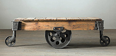 My web search turned up tons of the carts repurposed mostly into coffee tables, but also consoles, kitchen islands and more. One had been painted red and made into a wagon for hauling plants and supplies for gardening. I also found a different take on a factory cart: It was a two-seat modified golf cart that was used by McDonnell Aircraft in St. Louis, MO, to transport President Kennedy when he visited in 1962 to view construction of the Gemini and Mercury space crafts.