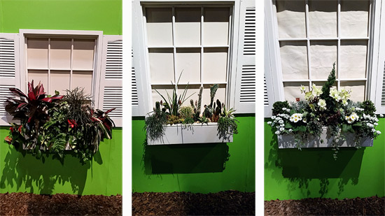The movie displays at the flower show were inspired by Disney movies – from “Tarzan” to “Frozen” to “Into the Woods” to “Ratatouille” to “Nightmare Before Christmas.” A beautiful architectural sculpture in wood represented the movie “Malificent.” Just as I remembered, the miniatures were still very popular, with a long line of people waiting to get a look inside the shadowboxes. “Follow the Yellow Brick Road,” the exterior of Dorothy’s house after it landed on the wicked witch, took first place in that category.