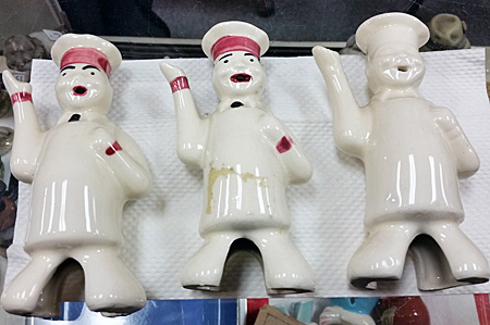 There was tray after tray of pie birds at the auction – part of a collection of sprinkle bottles, salt and pepper shakers, and black memorabilia that had been sold weeks before. Most of the pie birds were ceramic hollow animals: mostly birds, including blackbirds; ducks, bluebirds and roosters. The most amusing were three chefs. Each had an opening at the bottom – some narrow and pointed like a funnel, others wide and open like a petticoat skirt – that allowed the steam to rise and escape through openings in their mouths.