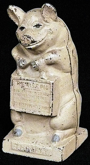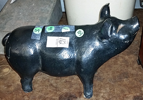 As for the cast iron pigs, one auction house a few years ago sold a 23-pound unpainted cast iron pig for $90. That was a big pig.