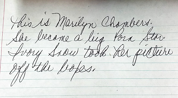 “This is Marilyn Chambers. She became a big porn star. Ivory Snow took her picture off the boxes.”