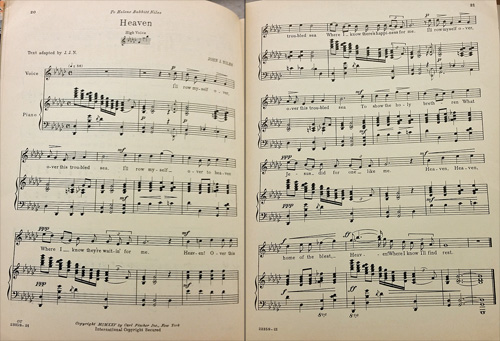 The arranger of the songs for piano and voice was a man named John J. Niles, and the songs were compiled in 1925. I’d never heard of him so I Googled his name. I found that Niles was not African American, but a Kentucky white man who had listened to the songs at church services, and had adapt them and put them to paper.