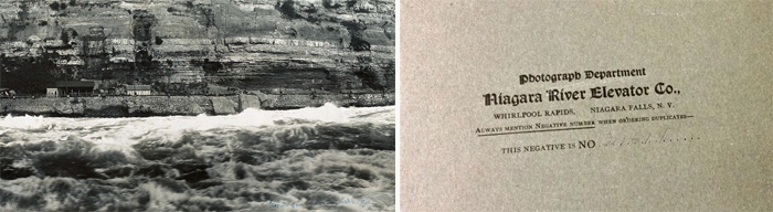 Part of a panorama of three photos of rapids on the Niagara River from the platform of the Niagara River Elevator Co. Photo from Library of Congress.