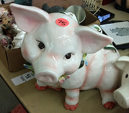 “We’re going to sell the rest of the pig collection next week,” I heard the auctioneer say as I was browsing the tables at the auction house.