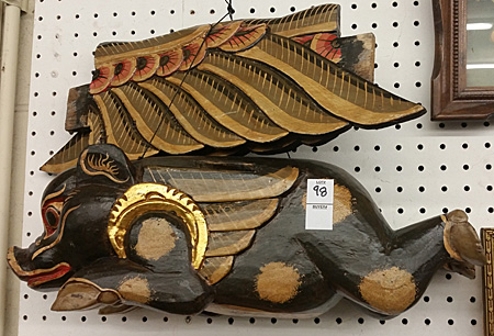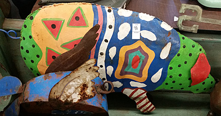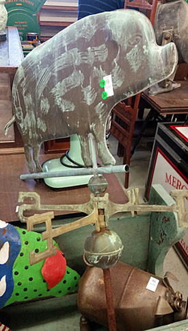 No doubt this was a collection of someone enamored with pigs. It had seemingly attracted others of the same ilk because several auction-goers had already left absentee bids (the weather vane and BBQ sign had two bids each).