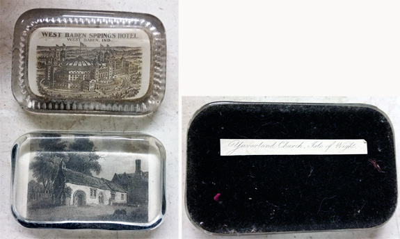 But these were different. They didn’t include the Baccarat milleflori mushrooms or the St. Louis crowns. These held portraits of churches, ministers, historical buildings. There were George Washington and his Mount Vernon, VA, home, and another that looked like Niagara Falls. These obviously had been someone’s collection, because there were so many of them.