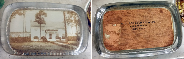Churches were not the only featured subjects on the paperweights. I found souvenir paperweights for several world fairs, where sellers ostensibly had a ready-made market: 1933 Century of Progress Exposition in Chicago, the 1904 St. Louis World’s Fair, the 1893 Chicago World’s Fair.