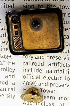 Googling, I could find nothing about the TV-shaped pins, except for retail sales of several others (Howdy Doody and Buffalo Bob Smith, “Get Smart,” the Three Stooges and cover art for KISS’ 1976 “Rock and Roll Over” album). Since pins were made featuring KISS, perhaps these were not cereal-box premiums but were actually made for retail sale to anyone.