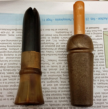 The calls were made by a company called Lohman, according to the sheet, and at least one of them was call No. 104. I wasn’t sure how old these were – there looked new and unused – but Lohman was selling No. 104 as far back as 1966. These, though, could have been made years later.