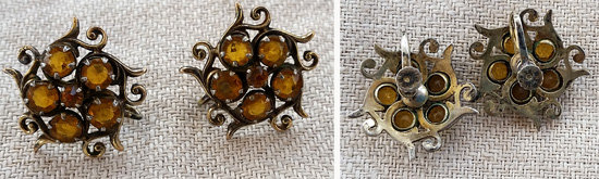 Several years ago, on a whim, I bought a pair of screw-back earrings with butterscotch stones. The auctioneer was trying mightily to sell them – they’re sterling, he mentioned – and no one wanted to pay the price he was asking.