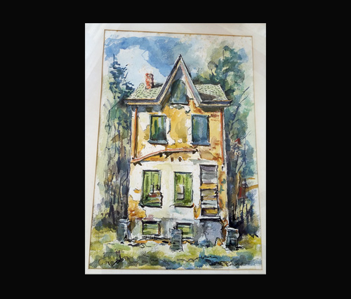 It’s the house right up the street, I heard one auction-goer say. And then another, and another. They were looking at an old abandoned house in a watercolor painting that I had just bought at auction.