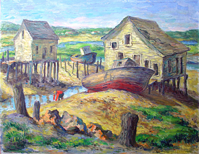 I first saw the painting leaning against a wall outside the garage of the home where the auction was being held. It reminded me of a house in a gloomy painting that I had picked up a few years ago – the same proud stature in defiance of a less-than-stellar appearance. That house, though, was not abandoned, but its gray and black tones gave off the feeling of something that no one wanted.
