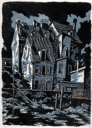 At the auction, I was the only bidder for the Condit watercolor, and I also got a look at the house. On the front, an orange “No Trespassing” sign on the door from the Department of Licenses and Inspections warned that it had been cleaned out and sealed, and that violators would be fined and imprisoned.