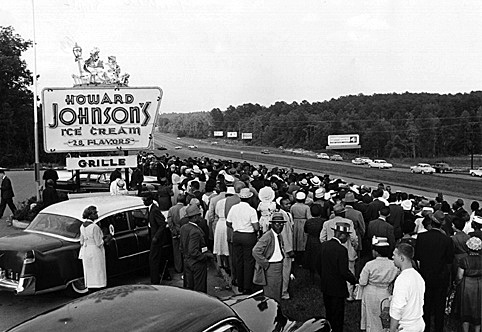 During the 1960s, the restaurants were the site of protests by African Americans who wanted to sit down for their clams and ice cream. Agitation from blacks was seemingly on the minds of Howard Johnson’s franchisees at their meeting in 1957. They were told by a Cornell University law school professor to use “courtesy and tact” in denying service to African Americans, telling them that they wouldn’t mind serving them but for those local laws against it.