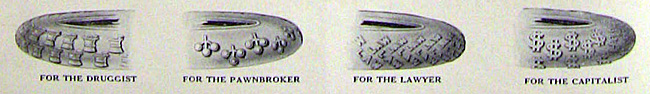 What I found intriguing about the Michelin tire ad was the suggested tread designs on several “non-skid” tires. One design had the heads of donkeys “For the Democrat,” elephants “For the Republican,” palettes “For the Artist,” dollar signs “For the Capitalist,” musical staffs “For the Musician” and several others.
