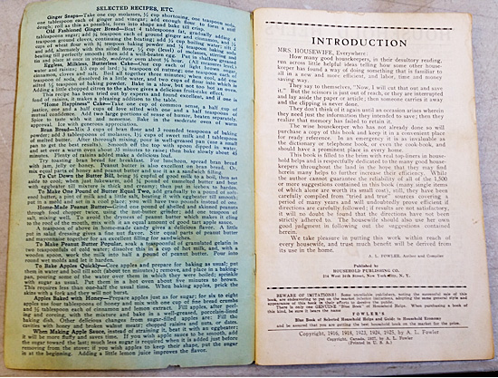 That’s the type I found at auction recently, aptly titled “Fowler’s Blue Book of Selected Household Helps and Guide to Household Economy” by A.L. Fowler from 1925. It was a thin book with a blue cover – unpretentious in its appearance, utilitarian in its purpose.