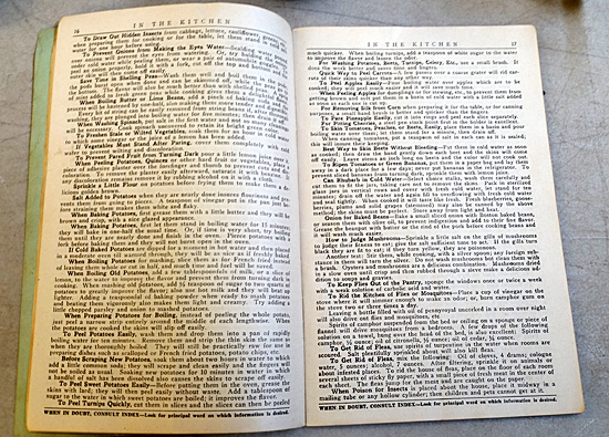 The blue book is pure and simple a guide – to just about everything. Fowler tried to pack as much as he could in the pages of his household book, arranging the tips by rooms in the house and dropping in a few recipes. He warned that he couldn’t vouch for each of the 1,500 tips in the book, but that they derived from “tried and true” methods.