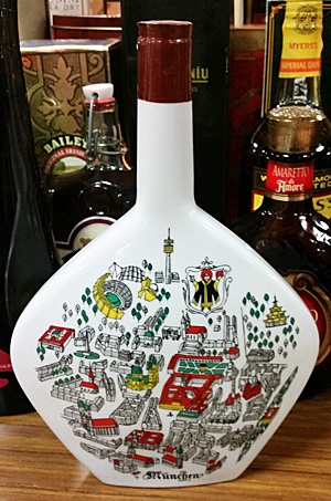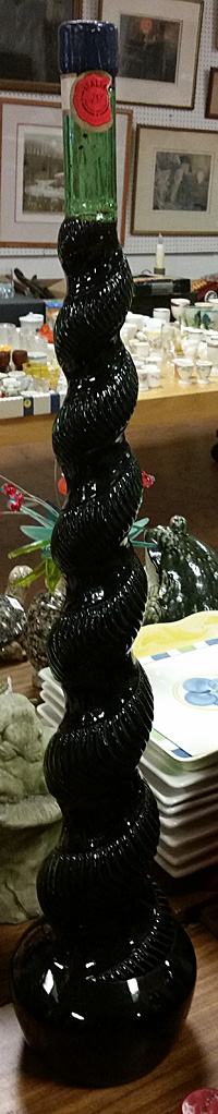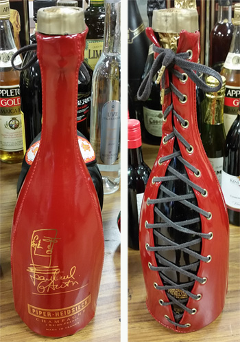 That’s my bottle, I thought as I approached one of two tables at the auction house filled to the brim with all sorts of wine and liquor bottles. It was in the shape of an island man wearing a sunshine-bright yellow plastic hat, his features outlined in brilliant colors against amber glass. The bottle was a standout among the commonly shaped wine bottles surrounding it, except for the one that wore a corset.