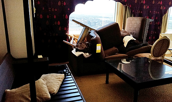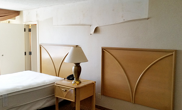 The best thing about the room was its wonderful view of the ocean. The worst was the mold on the back of wallpaper piled on the floor that had been torn from the walls. At the other end of the hallway, a pungent odor – likely the musty smell of mold – filled the air.