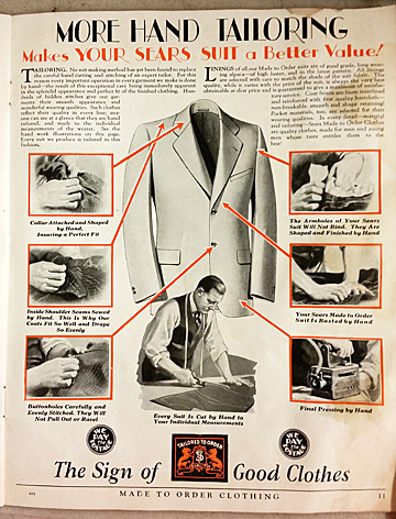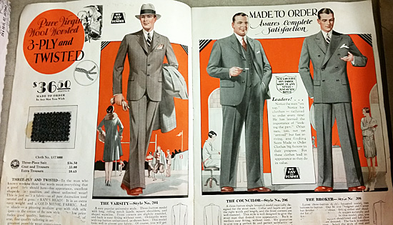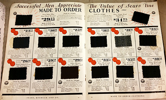 There was a time, as everyone knows, when you could buy just about anything from a Sears, Roebuck and Co. catalog. I was surprised to see, though, that Sears also sold “made -to-order” suits for men.